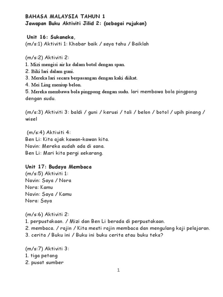 Muat turun buku aktiviti bahasa melayu tahun 2 sk kssr berformatkan pdf.buku aktiviti interaktif untuk kegunaan seluruh sek. Lari membawa bola pingpong dengan sudu. Jawapan buku aktiviti bahasa melayu tahun 3 jilid 2 unit 13. Kongsi dan muat turun buku aktiviti bahasa melayu tahun 1 (jilid 2) secara percuma. 2020 dewan bahasa dan pustaka malaysia. 29 found this document not useful.